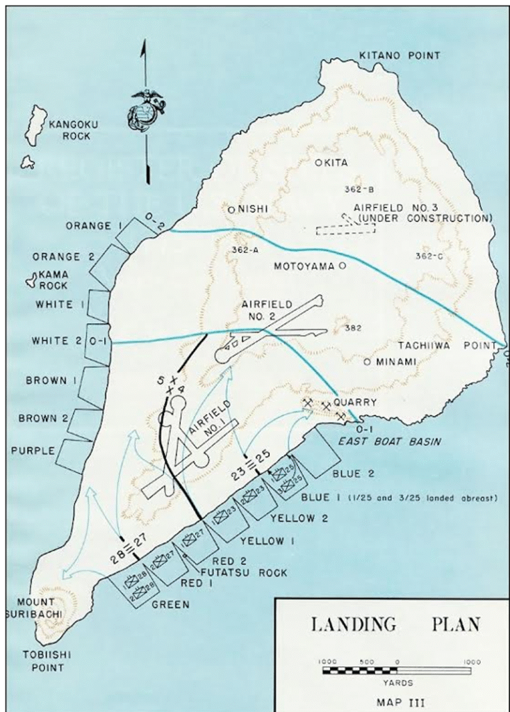 Američki obavještajni izvori su bili uvjerenu da će Iwo Jima pasti u roku tjedan dana; u svjetlu tih optimističnih informacija donesena je odluka da se ide na zauzimanje Iwo Jime te operacija dobiva kodno ime ‘Operation Detachment’. Američke snage nisu bile svjesne da Japanci pripremaju složenu i dubinsku obranu, značajno se udaljivši od uobičajene strategije obrane plaže. Koliko su uspješne bile japanske pripreme za obranu govori činjenica da su nakon bitke stotine tona savezničkih bombi i tisuće streljiva teškog kalibra ispaljene na japanske položaje ostavile japanske vojnike gotovo neokrnjene i spremne na borbu koja će nanijeti teške gubitke marincima.
